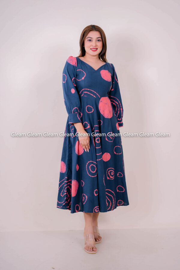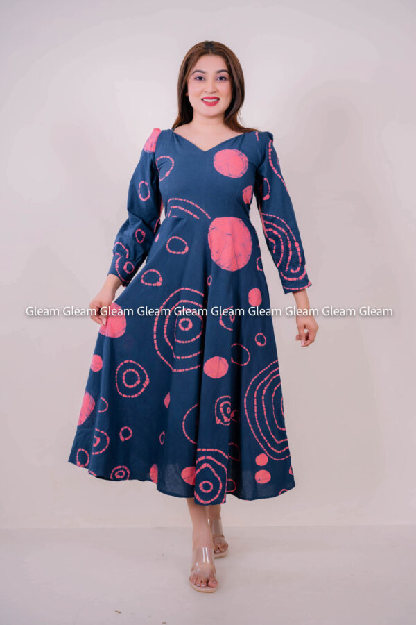 Celestial Whirl Midi Dress - Navy with Coral Batik