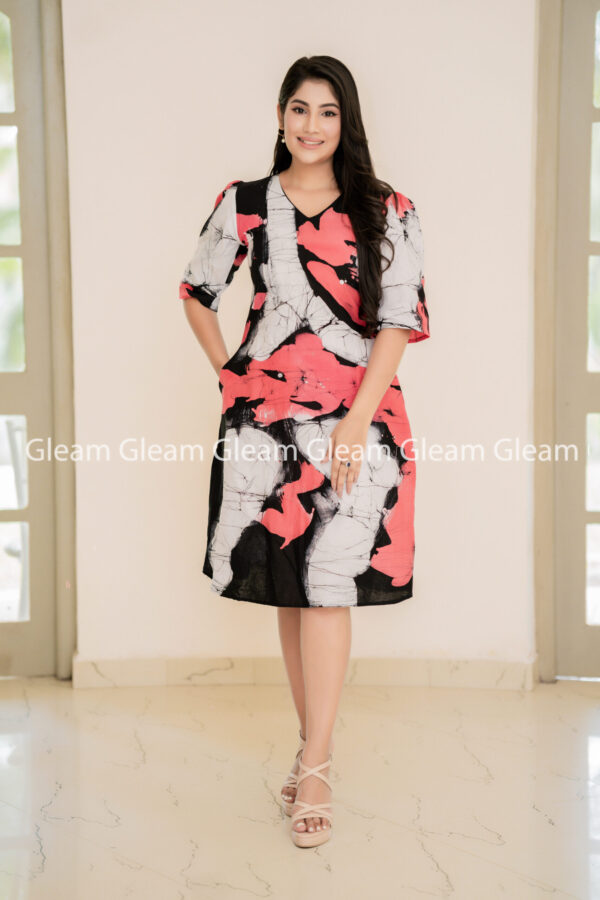 Blush Stroke Dress - White, Light Pink & Black Batik