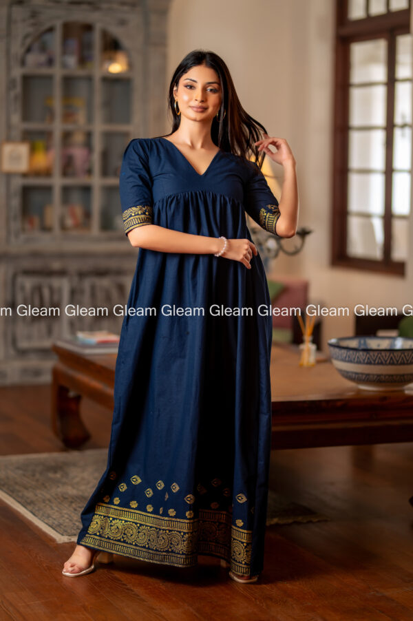 Discover Blue Harmony, a handcrafted blue batik dress with elegant white and black detailing. Perfect for everyday wear and chic outings. Shop online at Gleam Batik Sri Lanka.