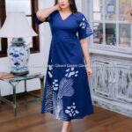 Ocean Mist Midi – Navy & White Batik Dress