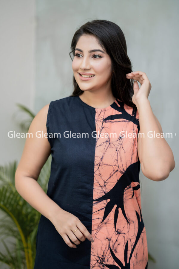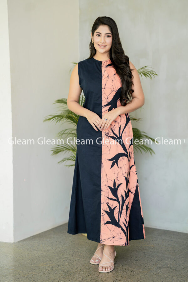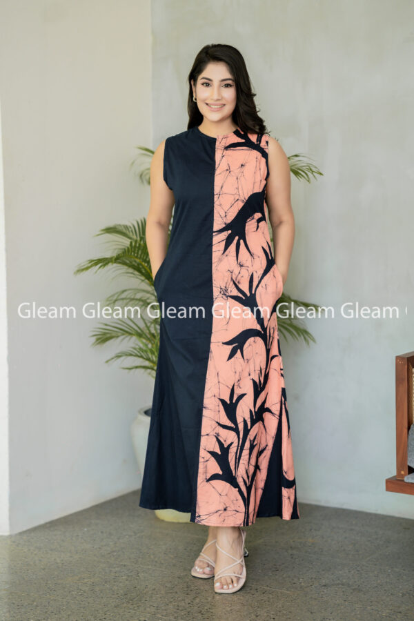 Soft, feminine, and full of charm, the Peach Petal Bloom dress features delicate hand-drawn floral batik in serene peach tones. With its sleeveless silhouette and airy flow, this dress is perfect for sunny days, garden events, or weekend outings with a touch of elegance.