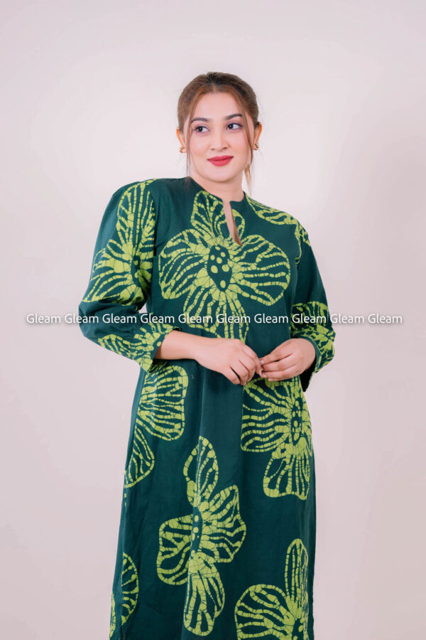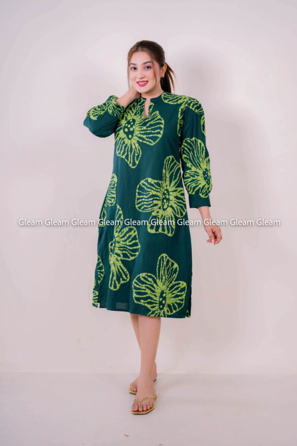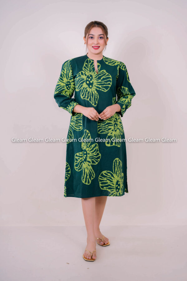Bring island elegance to your wardrobe with the Tropical Fern Flow Dress, a breezy statement piece featuring a striking two-tone green batik print inspired by lush fern leaves.