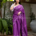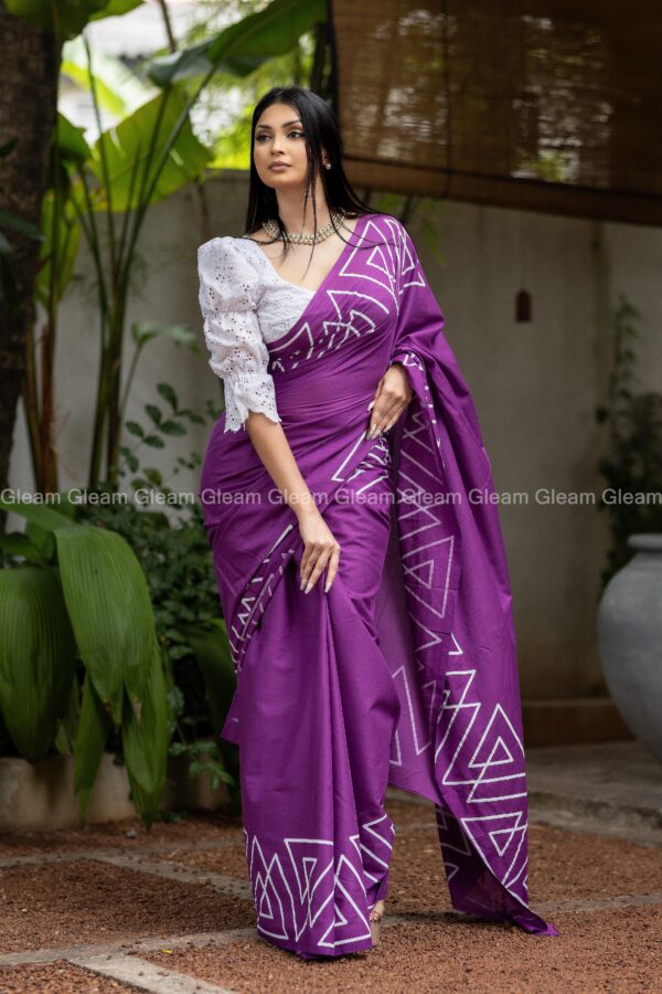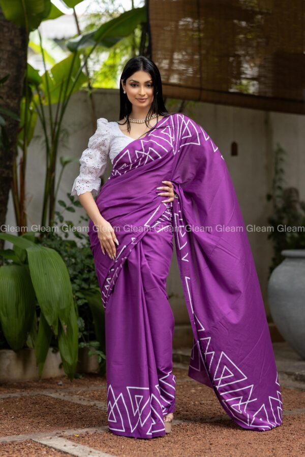 Soft, graceful, and effortlessly elegant — our Lavender Grace Handprinted Saree features a delicate light purple base beautifully complemented by a white border print.