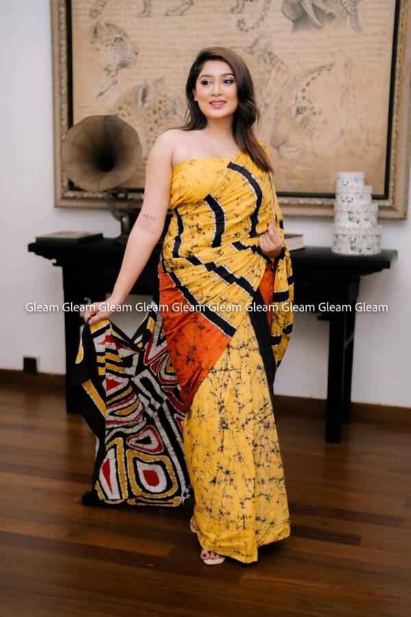 Each batik saree is handcrafted using eco-friendly dyes and traditional techniques. To preserve its beauty, hand wash gently in cold water and dry in shade. By choosing batik, you support local artisans and sustainable fashion in Sri Lanka.