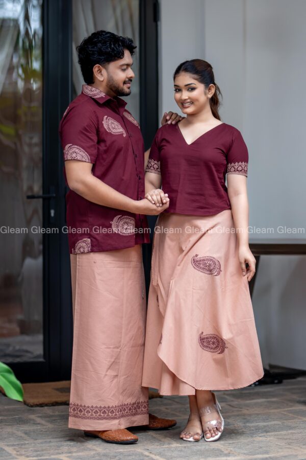 The Sand Rust Sarong is crafted from soft beige fabric adorned with rich maroon handprinted patterns, bringing a perfect balance of elegance and tradition. Lightweight, breathable, and comfortable, this sarong is ideal for festive Avurudu celebrations, family gatherings, or casual outings.