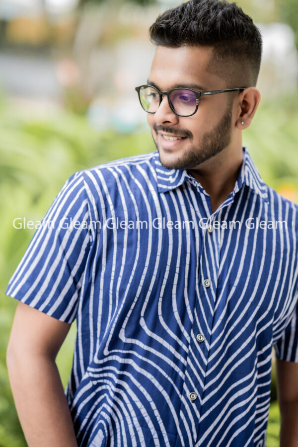 A sophisticated blend of dark blue and white stripes handcrafted through traditional batik artistry. This shirt combines classic style with a modern twist — perfect for smart-casual wear or relaxed weekends.